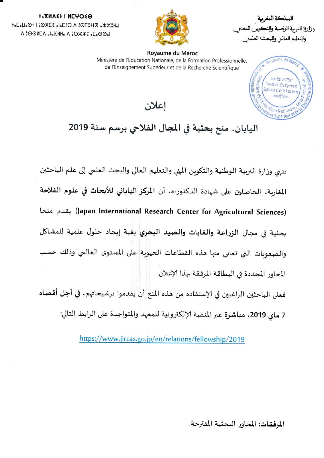 Alwadifa Maroc / Autres offres d'emploi / Bourses d'études اليابان: منح بحثية في المجال الفلاحي – 2019 ShareSharePin It اليابان: منح بحثية في المجال الفلاحي – 2019 Bourses d’études