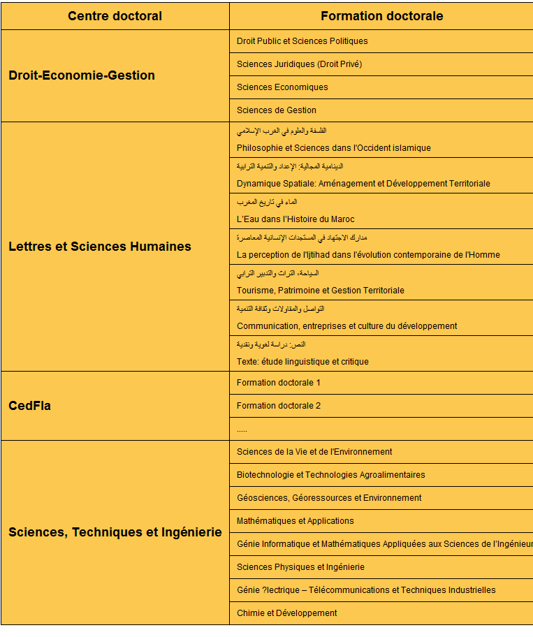 Les Centre des Etudes Doctorales de l’Université Cadi Ayyad lance des appels à candidature pour les formations doctorales suivantes :