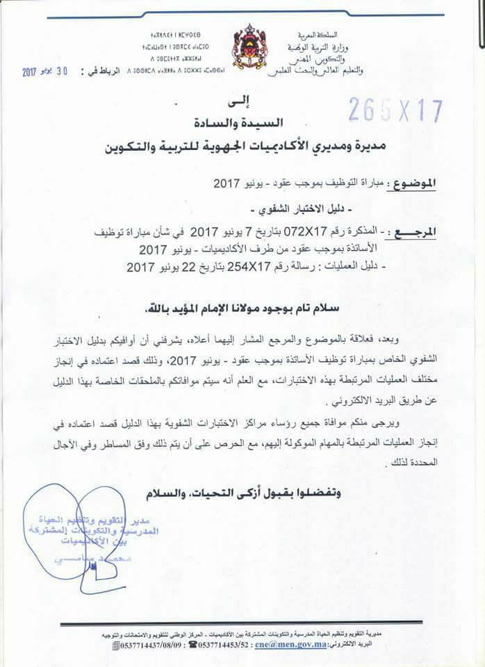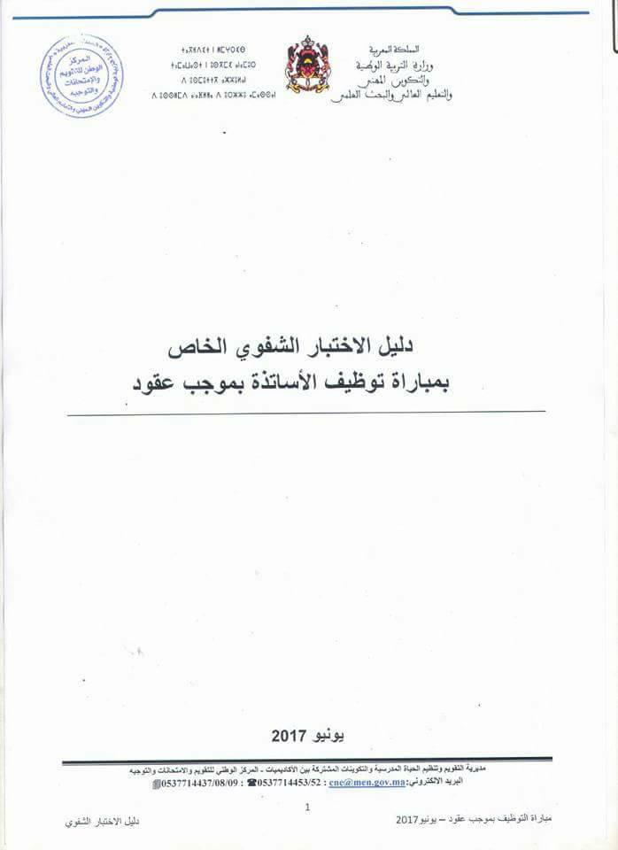 Alwadifa Maroc / Alwadifa TAALIM / Autres offres d'emploi دليل الاختبار الشفوي الخاص بمباراة التوظيف ShareSharePin It دليل الاختبار الشفوي الخاص بمباراة التوظيف بموجب عقود 2017