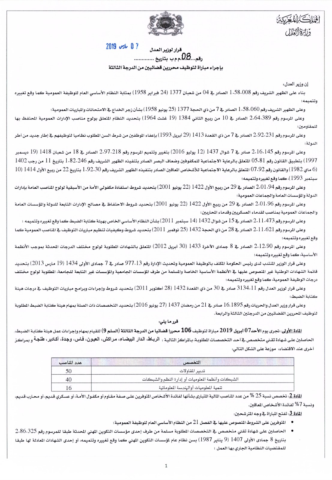 Alwadifa Maroc / Autres offres d'emploi / Emploi news سار لخريجي التكوين المهني .. وزارة العدل تفتح باب التوظيف أمامكم بعدد كبير من المناصب وفي عدة تخصصات ShareSharePin It سار لخريجي التكوين المهني OFPPT.. وزارة العدل تفتح باب التوظيف أمامكم بعدد كبير من المناصب وفي عدة تخصصات نص الاعلان