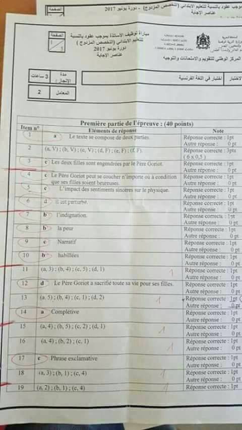 Alwadifa Maroc / Alwadifa TAALIM / Autres offres d'emploi / Resultats du concours عناصر الإجابة للإختارات الكتابية لمباراة التوظيف بموجب عقود لمادة الفرنسية للتعليم الإبتدائي ShareSharePin It عناصر الإجابة للإختارات الكتابية لمباراة التوظيف بموجب عقود لمادة الفرنسية للتعليم الإبتدائي 2017