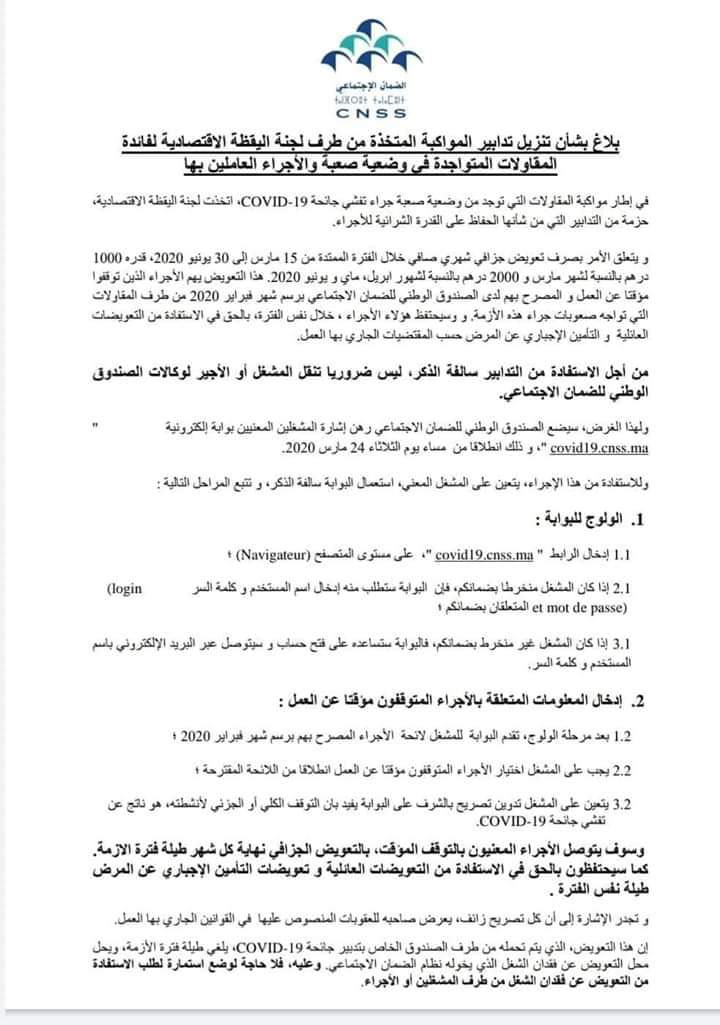 بالنسبة للأجراء العاملين في القطاع الخاص المتوقفين عن العمل بسبب إعلان حالة الطوارئ هذه شروط الإستفادة من التعويض