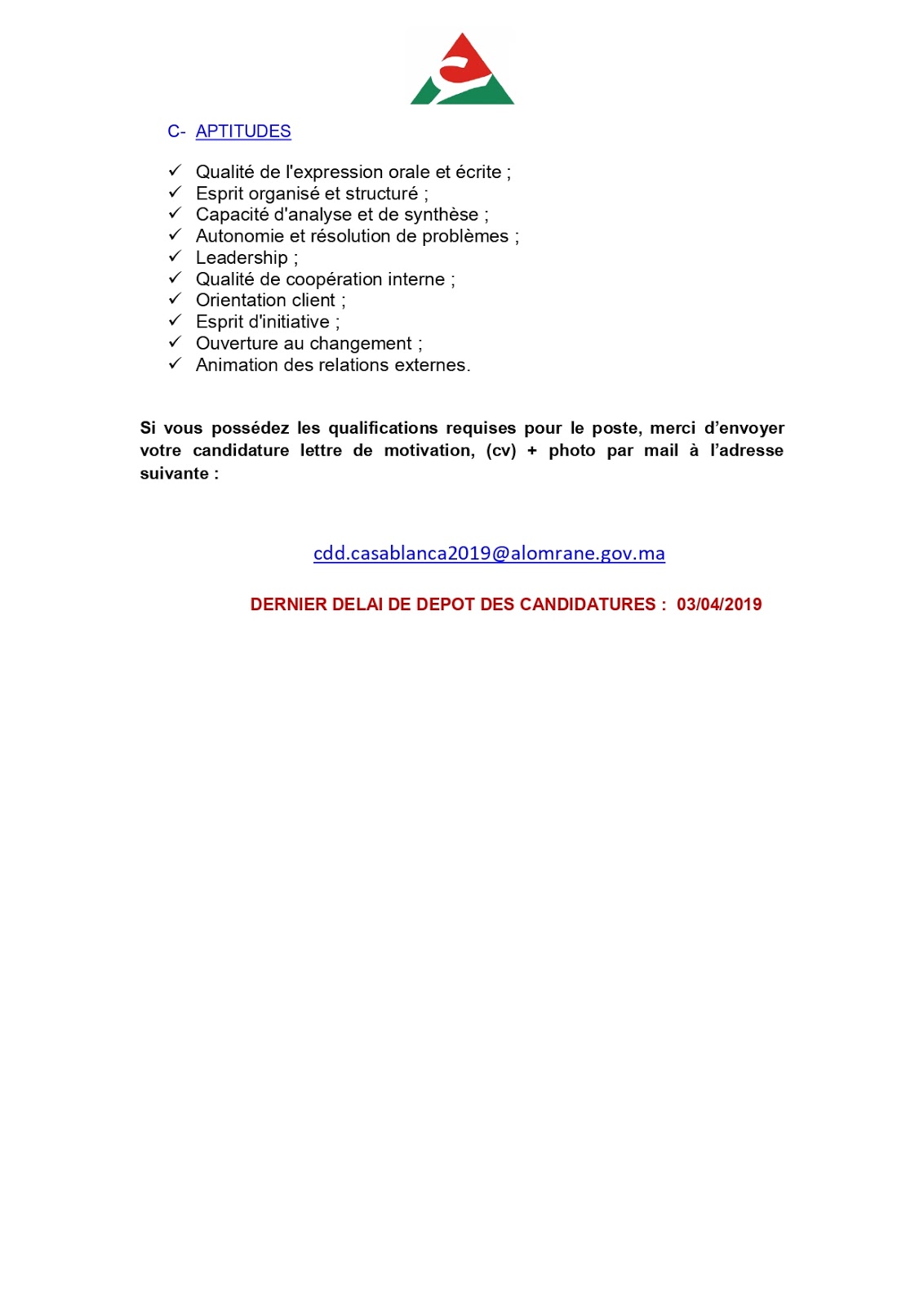 Alwadifa Maroc / Alwadifa master / Alwadifa tout le Maroc / Autres offres d'emploi / Etablissement Public / Offres d'emploi master / Par fonction / Par ville / Type مجموعة التهيئة العمران مباراة لتوظيف مكلف بالتنمية المستدامة آخر أجل 3 ابريل 2019 ShareSharePin It مجموعة التهيئة العمران مباراة لتوظيف مكلف بالتنمية المستدامة آخر أجل 3 ابريل 2019 نص الاعلان