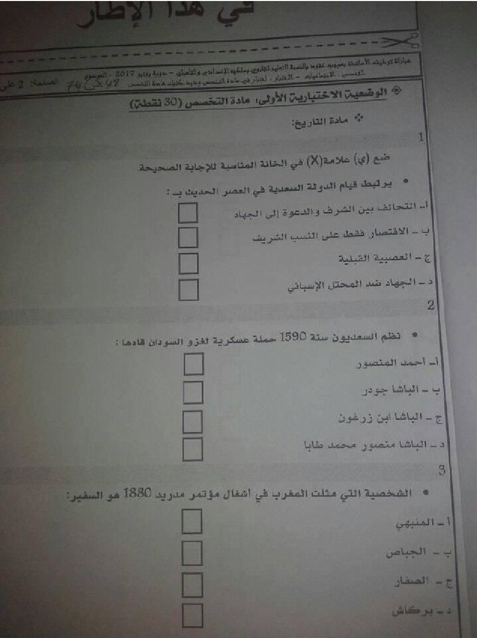 نماذج الاختبارات الكتابية لمباراة التوظيف بالتعاقد للتعليم تخصص الاجتماعيات الثانوي بسلكيه دورة يونيو 2017