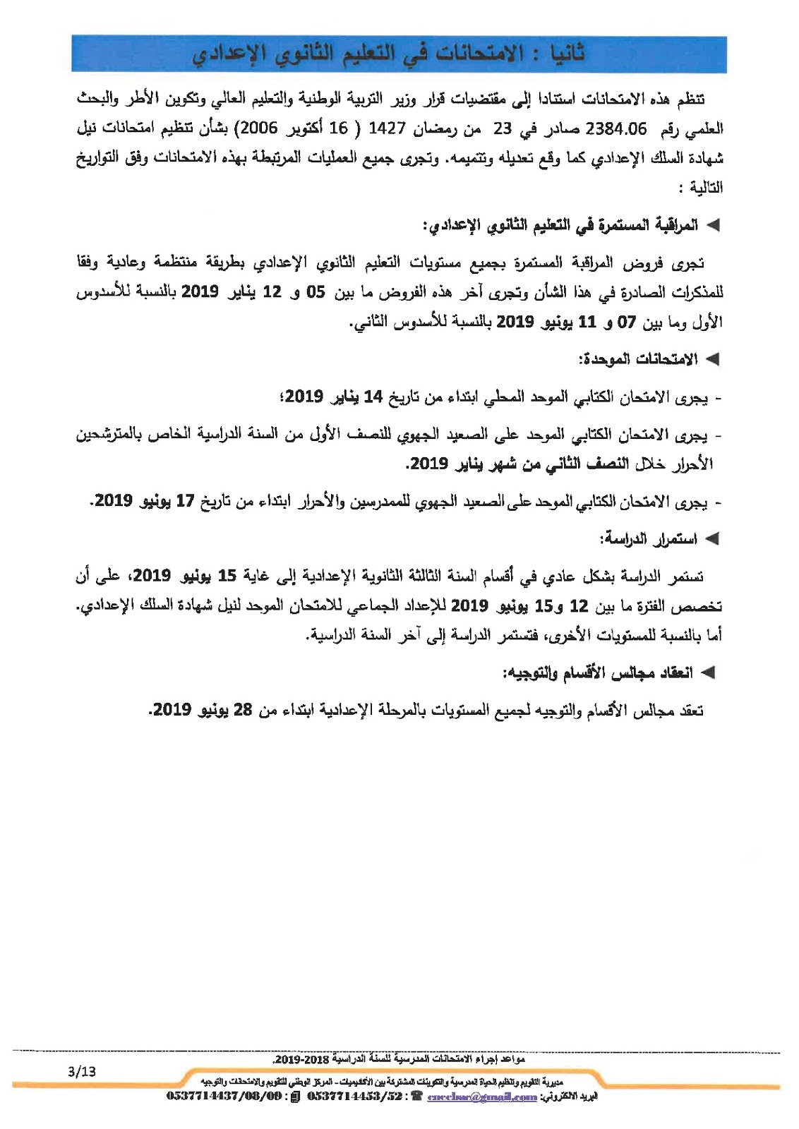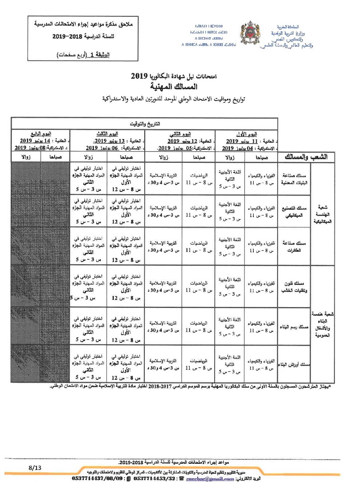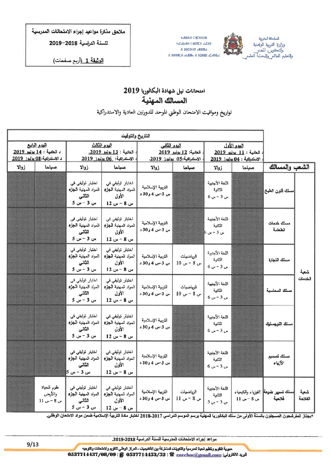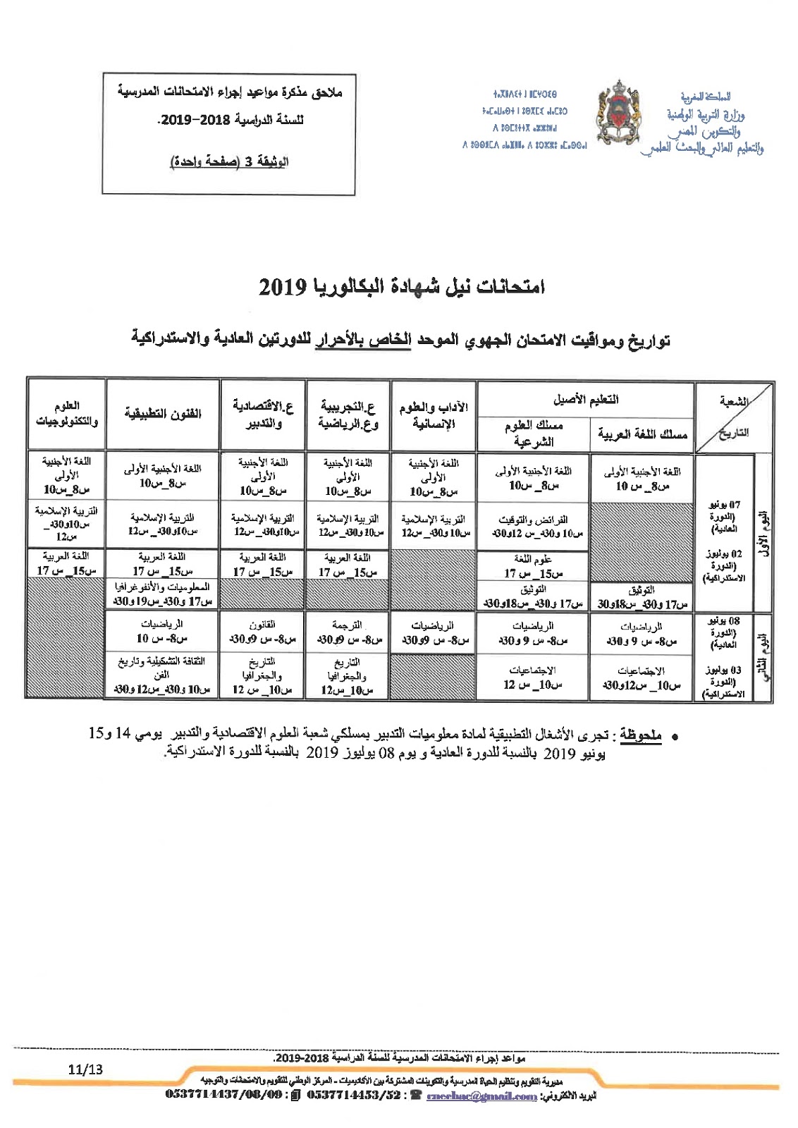 Alwadifa Maroc / Autres offres d'emploi / Bac 2023 / Ministère de l'éducation / Par ministere وزارة التربية الوطنية موعد امتحانات البكالوريا 2019 جميع المسالك والجدولة الزمنية للامتحان الجهوي والوطني ShareSharePin It وزارة التربية الوطنية موعد امتحانات البكالوريا 2019 جميع المسالك والجدولة الزمنية للامتحان الجهوي والوطني تحميل المذكرة اضغط هنا