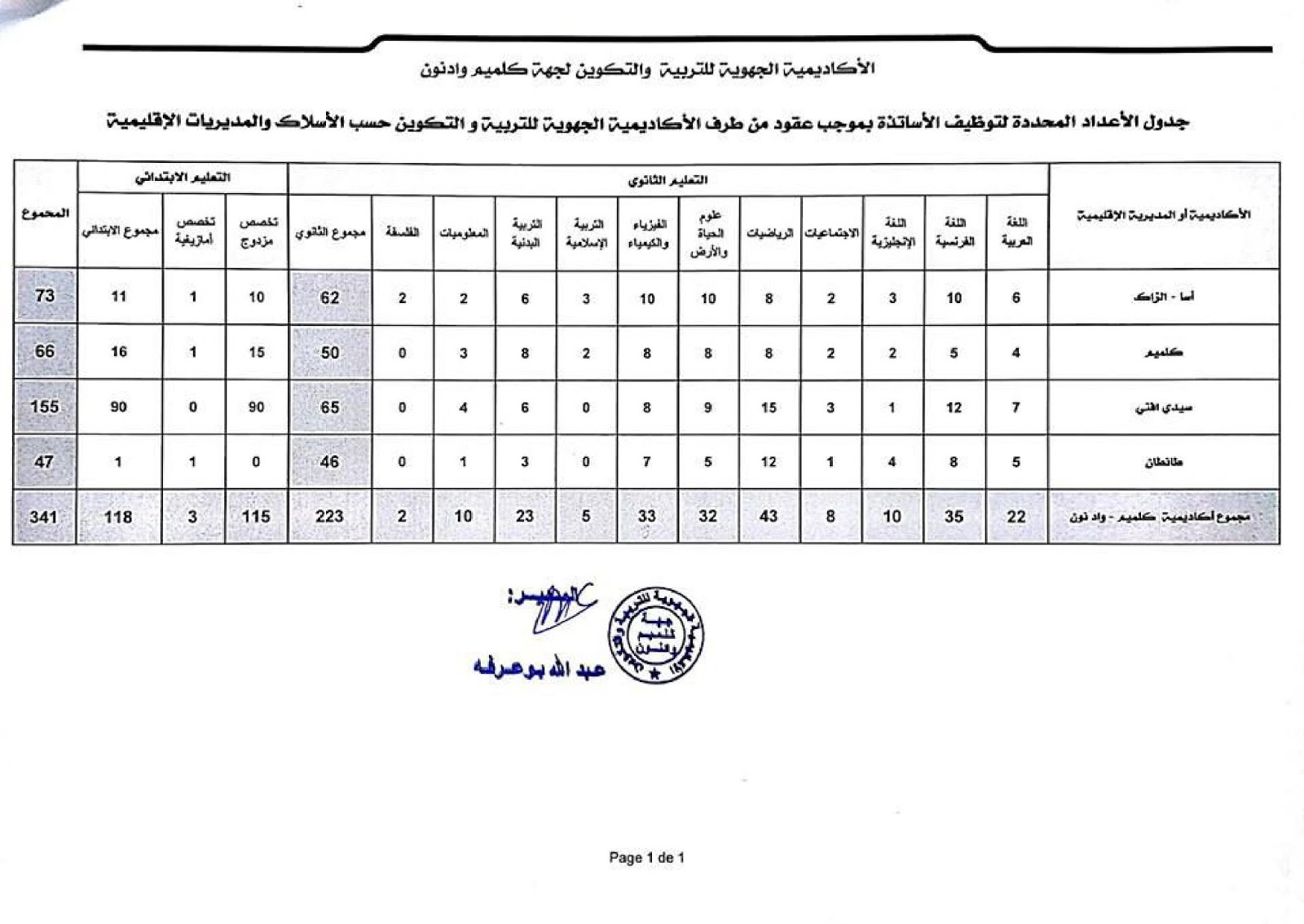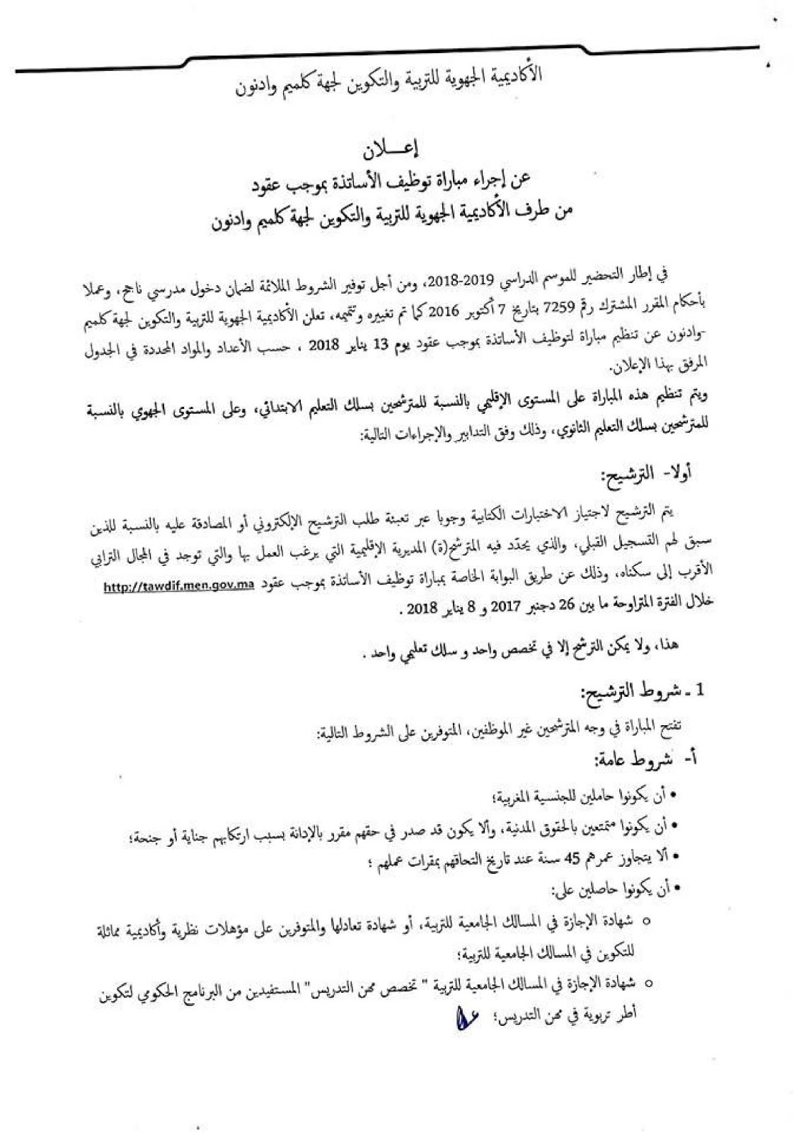 Alwadifa Guelmim / Alwadifa Maroc / Alwadifa TAALIM / Autres offres d'emploi / Par ville / Voir les autres villes وظائف الأكاديمية الجهوية للتربية والتكوين لجهة كلميم واد نون : مباراة لتوظيف 341 أستاذ(ة) بموجب عقد اخر أجل هو 9 يناير ShareSharePin It الأكاديمية الجهوية للتربية والتكوين لجهة كلميم واد نون : مباراة لتوظيف 341 أستاذ(ة) بموجب عقد اخر أجل هو 9 يناير 2017 تحميل الإعلان