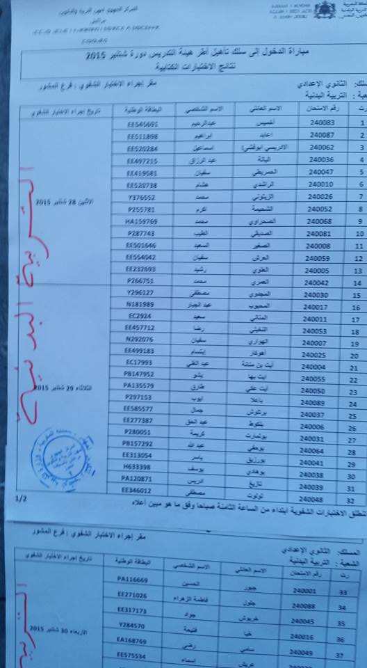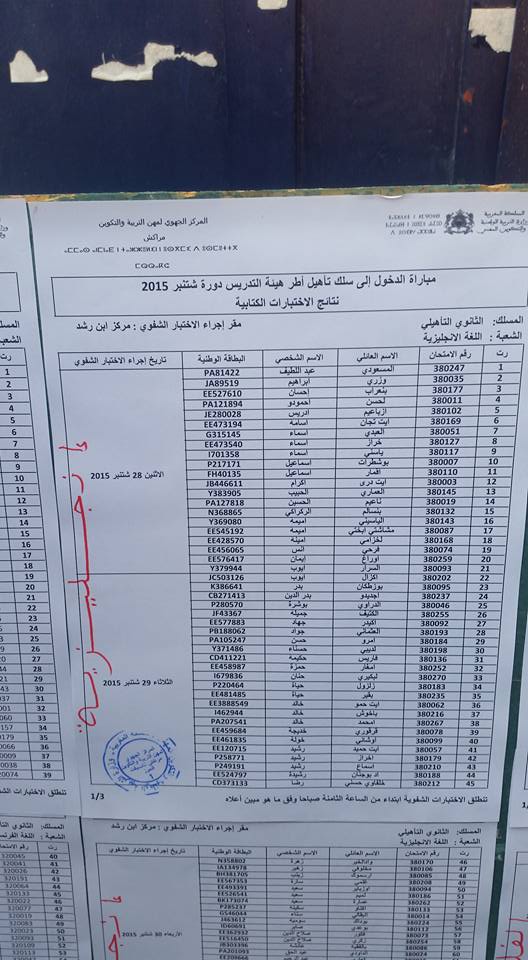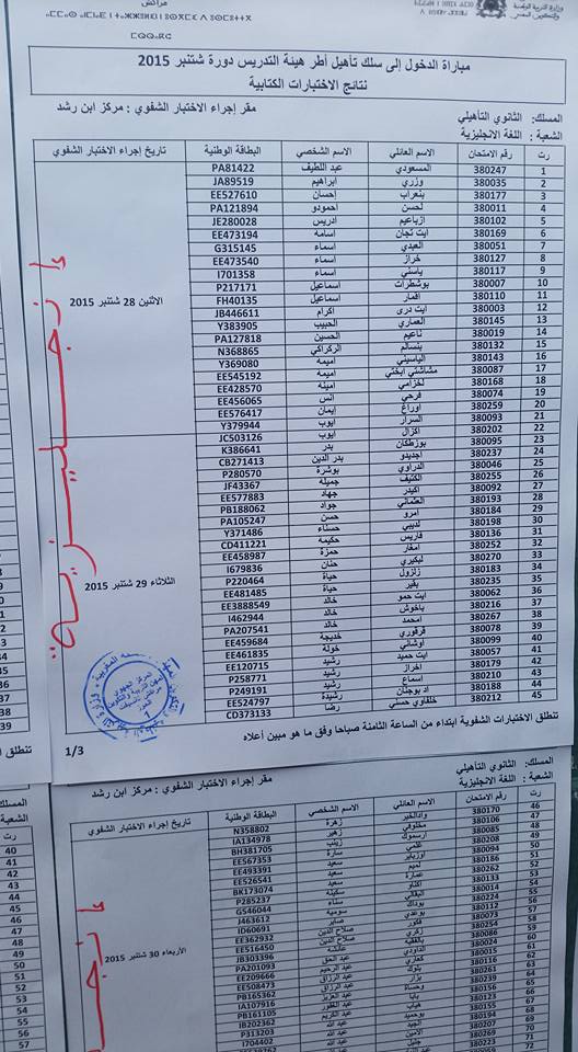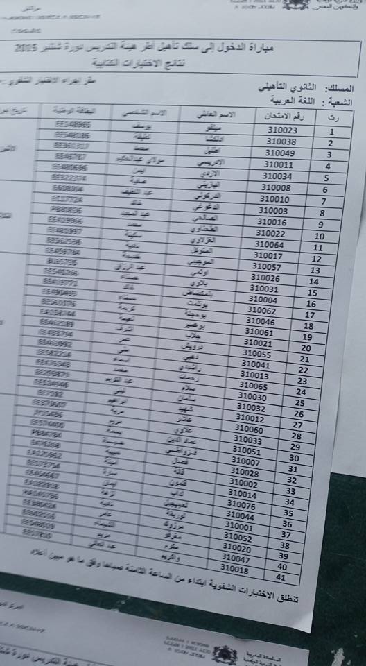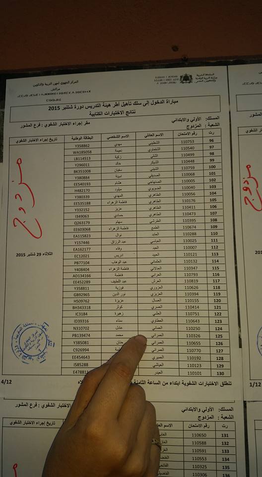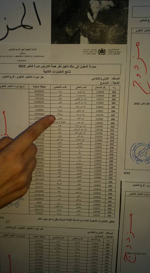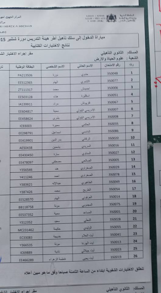 Alwadifa Marrakech / Par ville / Resultats du concours وظائف مراكش نتائج الإمتحان الكتابي من مباراة ولوج المراكز الجهوية لمهن التربية والتكوين ShareSharePin It مراكش نتائج الإمتحان الكتابي من مباراة ولوج المراكز الجهوية لمهن التربية والتكوين 2015-2016 مراكش ـ جميع الشعب ثانوي تأهيلي مراكش ـ إعدادي التربية الإسلامية و- التربية البدنية مراكش الإبتدائي مراكش إبتدائي أمازيغية مراكش