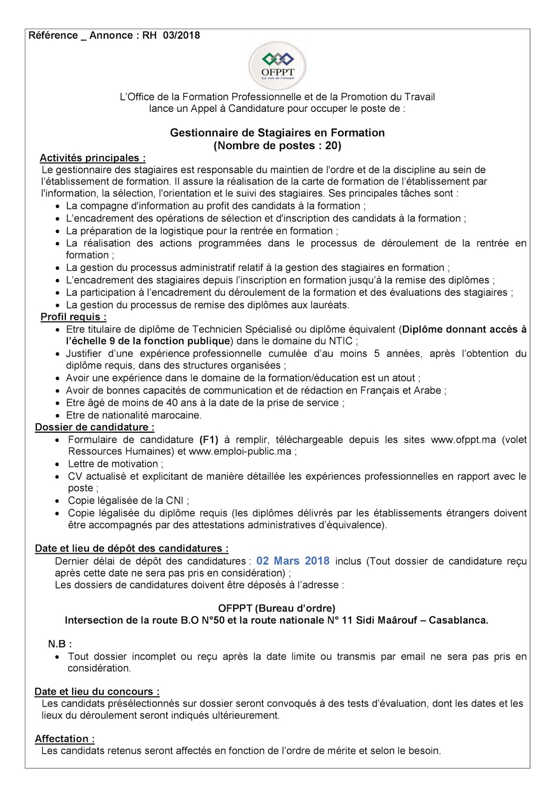 Alwadifa Casablanca / Alwadifa Maroc / Alwadifa technicien / Autres offres d'emploi / Offres d'emploi technicien / Par fonction / Par ville وظائف مكتب التكوين المهني وإنعاش الشغل مباراة توظيف 20 مسير شؤون المتدربين آخر أجل هو 02 مارس ShareSharePin It مكتب التكوين المهني وإنعاش الشغل مباراة توظيف 20 مسير شؤون المتدربين آخر أجل هو 02 مارس 2018 استمارة الترشيح